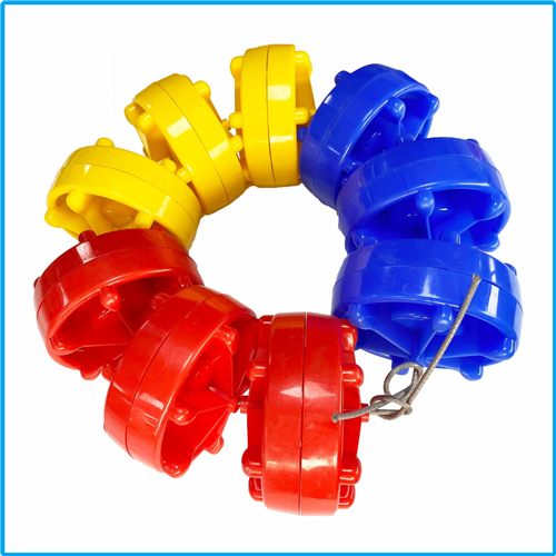 The buoys are injection-molded from engineering plastic, featuring bright colors, easy assembly, strong buoyancy, corrosion resistance, and wave absorption. Colors, lengths, and diameters can be customized. The ropes, tensioners, hooks, and embedded mounting devices are all made of stainless steel. Buoy specifications: φ12CM (general), φ15CM (standard competition use), spiral type φ6CM long 20CM (general). Standard lengths are 25M and 50M (custom lengths available).