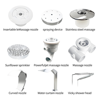 ? Massage accessories: Including nozzles (such as T-shaped nozzles, counter-current jets), shower heads (such as impact shower nozzles), and massage pumps, which use water flow to relax muscles, commonly found in spa bathtubs and swimming pools.